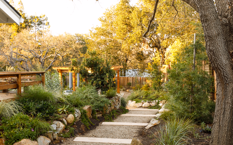 Around it, stone and earth gather— flagstone, pebbles, walls that welcome time, surfaces meant to deepen, not resist, their age.
